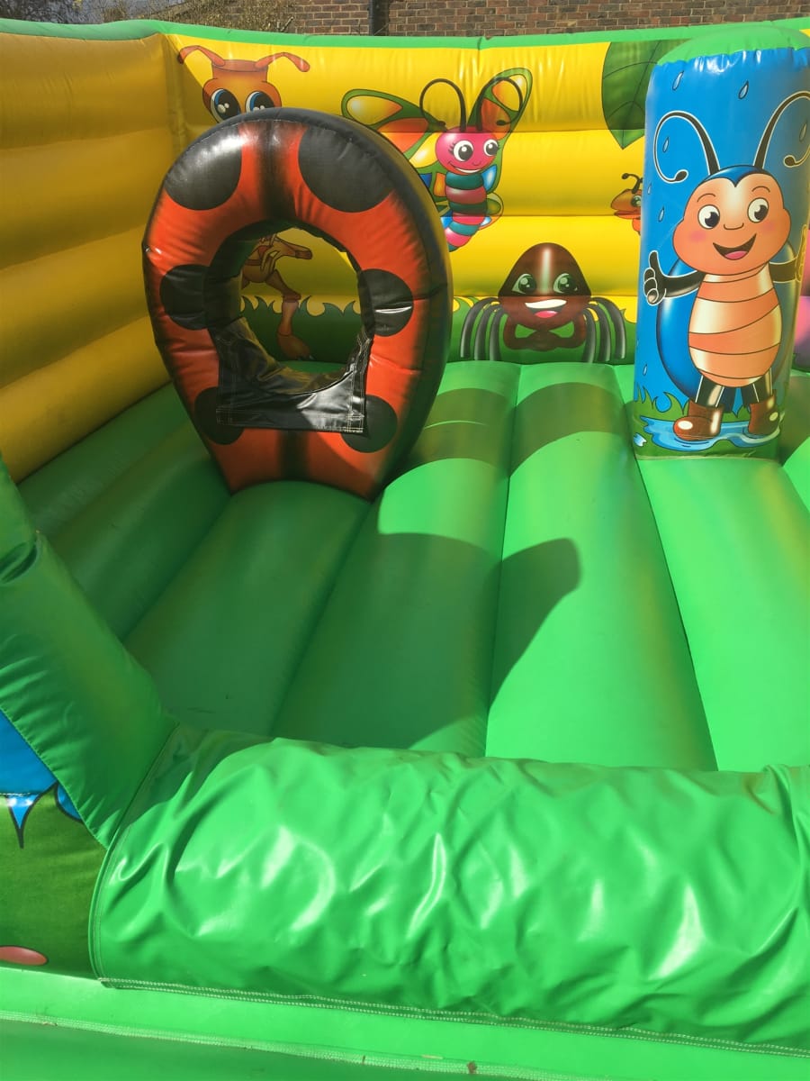 bouncy castle hire 12ft x 15ft Bugs Life Bouncy Castle in Crawley, Horsham & Haywards Heath — this cheeky little insect world is built for sticky-fingered explorers and giggle machines. It's colourful, buggy, and perfect for your little adventurer. Compact, playful, and full of critter charm.