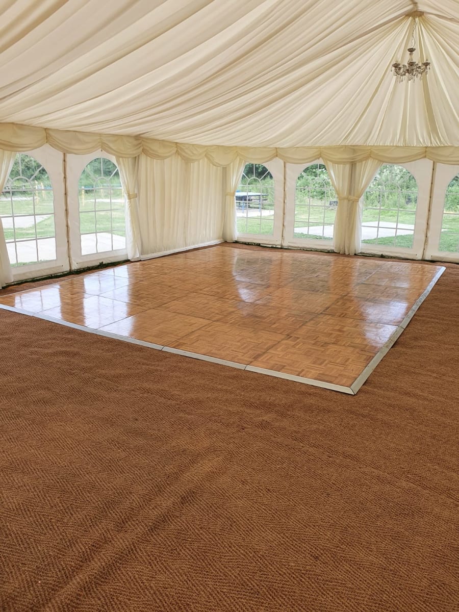 We frequently install this size dance floor at weddings in Dorking, school events in Oxted, and corporate functions in Gatwick. Wherever it’s needed, our team ensures everything is safely and professionally set up, with delivery and collection included in the hire.